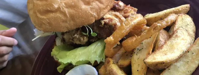 とても大きなハンバーガーでお腹いっぱい!居心地の良いカフェです。