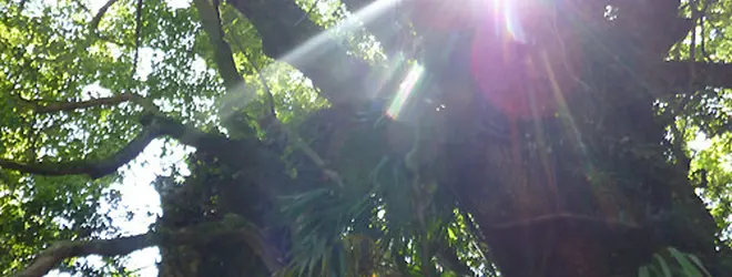 細い路地を不安になりながら、てくてく6、7分ほど。(看板は要所要所にあるけども!)丘の上にそびえる樹齢3000年とも伝えられる生命力にあふれた楠があなたをお出迎え。「生樹の御門(いききのごもん)」です。樹の根っこがまるで門のようになっていて、ここをくぐって奥の院へお参りして下さいねm(_ _)m