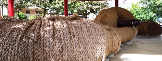 やちむん通りに向かって歩くとすぐに出てくる「大迫力の綱!」笑