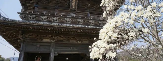 四国霊場第8番札所。十楽寺の西約4km。桜並木の参道から続く仁王門がシンボル。二層の堂々たる山門で、県の文化財にも指定されています。 本堂は昭和2年火災で焼失。再建を建て、現在の本堂は昭和46年に完成したものです。境内には焼失をまぬがれた多宝塔など備え、周辺の景観とあいまって幽玄な山寺の趣を生み出しています。
