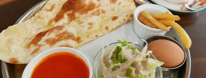 いつも店の前を通るのですが、タイミングが合わなかったお店。実はインドカレーのお店です。看板にモーニングがあるのを発見してから一度入ってみたかったのでした。モーニングは飲み物代ではなくてセット料金。「トーストセット」350円を基本に、写真は「ナンセット」で450円。朝から本格カレーをちょい食べしたい方にバッチリ。 モーニングタイム/8:00~11:00