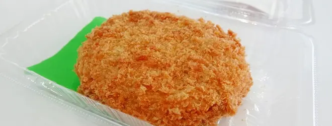 高岡コロッケとは、コロッケ消費量が多い高岡のコロッケという意味。例えば「三島コロッケ」のように中に入っている具に必ず地元の特産品を使用するような縛りは一切無く、高岡市内において創意工夫して作られた様々な具やサイズ形状のコロッケを総称して「高岡コロッケ」と呼ばれているようです。ちなみに写真のコロッケは豆腐コロッケ。コロッケなのにさっぱりした惣菜のような味わいでした。