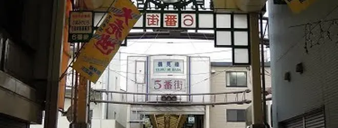 団体ベースで鶴見橋六番街商店街(振)から鶴五商店街(振)、アーケードベースでは鶴見橋六番街から鶴見橋五番街となります。鶴見橋商店街アーケード(大阪市西成区)