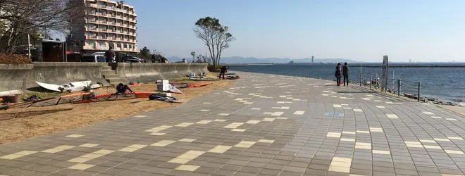 階段式の護岸で、直接海と触れ会えます。海陽ヨットハーバーから三谷町の若宮公園まで2キロ弱続きます。散歩コースの西の中心です。