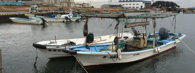 アサリ漁に船などが係留されています。
