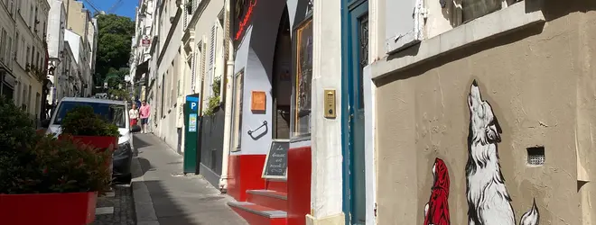 18区、モンマルトルの麓にあるストリートアートを扱うギャラリー。オーナーのAkizaさん自身もアーティストであり、自分や他のアーティストの作品展示や販売をしています。店前の壁にはLOUPYESTUのオオカミとLittle chaperon rougeの赤いマントを被った人物が描かれています。