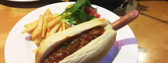 チリチーズドッグだモン☆パンもチリビーンズも自家製だモン!ソーセージもオリジナルだモン☆