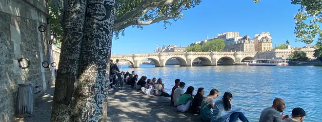 パリの夏の風物詩「Paris Plages(パリ・プラージュ)」。セーヌ川沿いをPlages/ビーチに見立ててバーやレストランが開いたり、長椅子が置かれたり、ミストシャワーがあったり。日本で言う所の海の家みたいになっていて、水辺でのんびりダラダラと過ごすための催しです。場所によってはセーヌ川をミニボートで周遊するアクティビティがあったりもします。