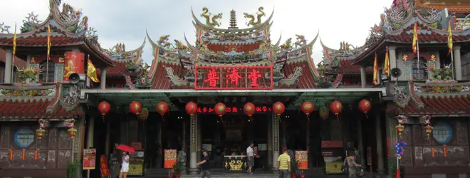 「大渓普済堂」は1902年に建立された、中国の小説「三国志」に登場し、台湾では商売の神様として信仰される「関聖帝君(関羽)」を祀ったお宮。