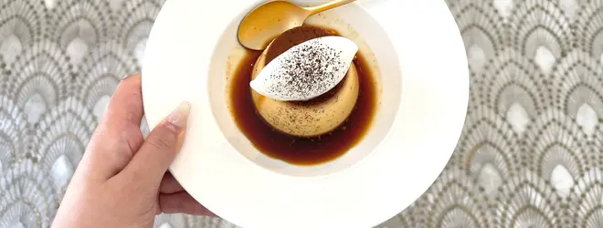 甘さは控えめで、たまごの風味がベストなおいしさ。上にある生クリームも甘すぎず、いっしょに食べると更にコクがでます。エスプレッソのパウダーがかかっているので、ビターな大人な味わいです♪