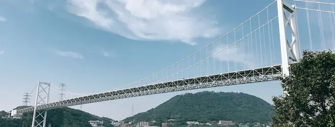 山口県下関市と、福岡県北九州市門司区の間の関門海峡をつなぐ自動車専用のつり橋。全長1068m、海面からの高さ61m、10ノット(時速18km)を越す海峡の潮流をまたぐダイナミックな景観が素晴らしいです。昭和48年に供用開始となり、九州へのアクセスが便利になりました。