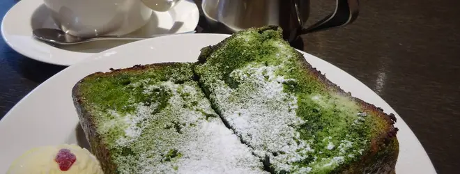 抹茶フレンチトーストに添えられたバニラアイスが抹茶味をよく引き立てています。