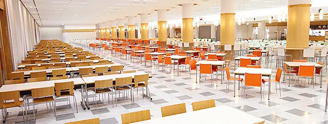 ショッピングモールのフードコートもビックリの綺麗で広くてメニューも豊富な大食堂です。