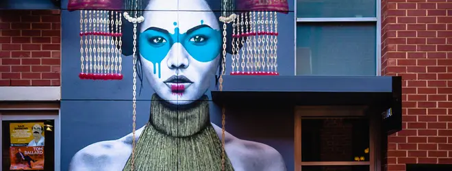 アジアの女性をフィーチャーした人気アーティストFin DAC(フィンダック)の作品。アデレードには南オーストラリア大学の校舎にも壁画があります。