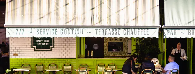 パブやレストラン、バーが並ぶ路地Ebeneser Placeにある、グリーンのオーニングやタイルが可愛い隠れ家フレンチブラッスリー。