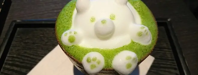数々の美味しそうな抹茶スイーツが揃う中、個人的に最も見た目が可愛らしく、SNS映えしそうだと思うメニューが写真の「お濃い抹茶ラテ3Dアート」です😊深い旨みと品の良い苦みが鮮やかな抹茶ラテから、ぷっかりと浮かぶキャラクターが愛らしいです💕キャラクターはクマ、イヌ、ネコ、ウサギ等お好きな動物でオーダーできます👍