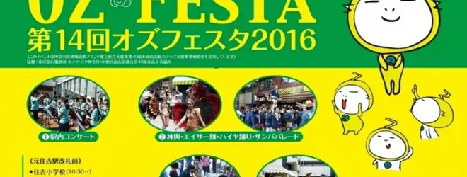 地域お神輿、エイサー隊、サンバパレードなど商店街一体が熱気に包まれるオズフェスタは今年で14回目。