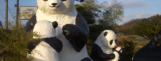 道路沿いから目立つパンダの像は、かつて、兵庫県姫路市に存在した宿泊施設「姫路健康ランド(別名パンダランド)」にあり、閉鎖時に譲り受けたものであるとか。