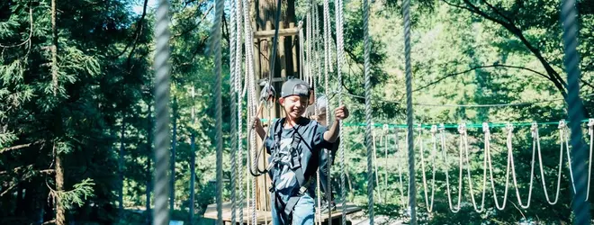 大自然の中でジップライン等、県内唯一のアスレチック体験を楽しめます! マイナスイオンを感じながら、思いっきり身体を動かそう!