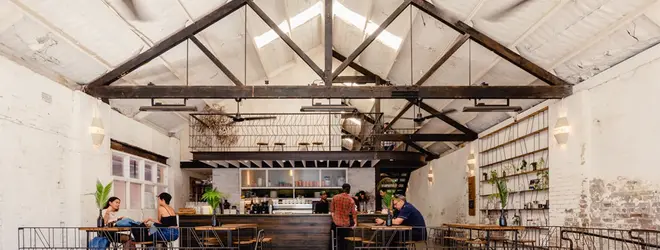 ロースターとしてもシドに有数の人気を誇るカフェ「MECCA(メッカ)」の焙煎所は、高い天井が印象的な建物にあります。