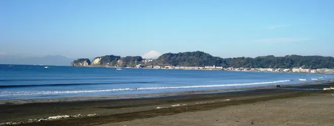 鶴岡八幡宮を背に20分ほど真っ直ぐ道を歩き続けると、なんと浜辺にたどり着きます。