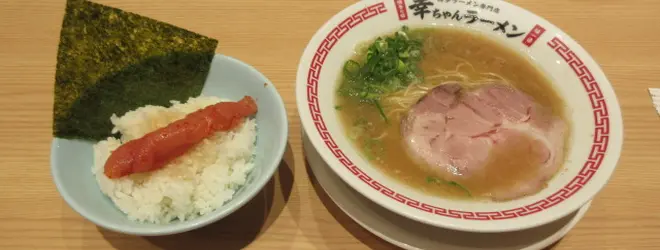 博多名物のとんこつスープをベースにしたラーメンと博多を代表する名物の明太子が乗ったご飯の定食も。