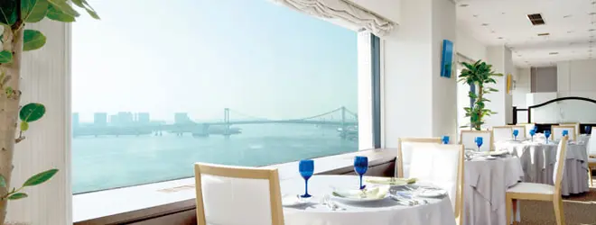 ベイサイドの顔でもあるアジュール竹芝には4つの飲食店が入っている。いずれも景色と食事を充分に楽しめる内容。会食などにも使いやすい。
