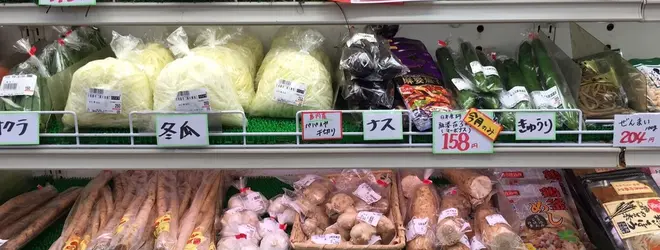 食料品や飲み物が売っています。野菜コーナーの一角には、島でとれた野菜も並んでいました。