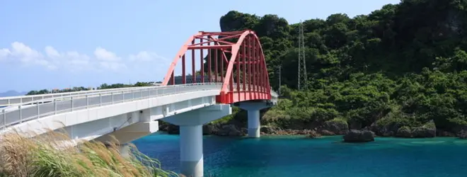 伊計島へ繋がるアーチが美しい赤い橋です。
