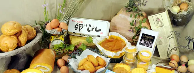 養鶏場が直営。濃厚な卵をつかったプリンやシュークリームが人気です! 卵料理&卵スイーツが食べられる「ふわふわダイニング」を併設。