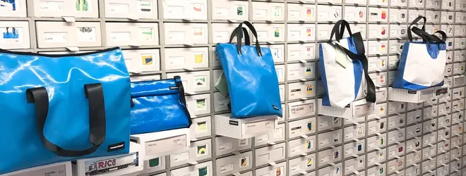 トラックの幌を使ったカバンが人気のフライタグ。一つ一つ柄が異なるので、お気に入りの一点物が見つかればラッキー☆🤞