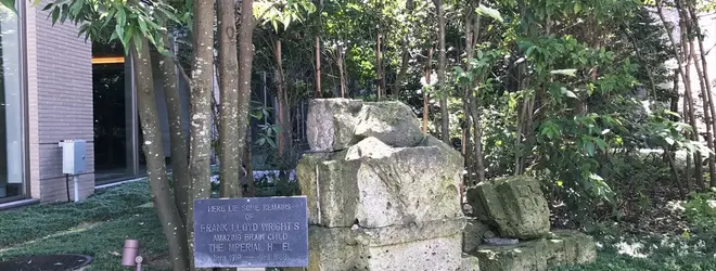会員制の倶楽部組織である東京アメリカンクラブ。こちらのエントランス手前にはフランク・ロイド・ライトの帝国ホテルの一部の石が飾られています。