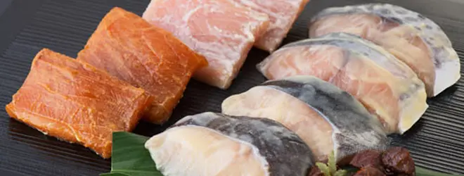 みさきまぐろきっぷの思ひで券が使えるお店です。こちらの羽床漬魚セットはかじきの味噌漬け・粕漬け、焼きかじきの味醂醤油漬け・西京漬けの計4切れが入っています。家に持ち帰ってからも三浦の余韻を楽しめるのがよいです。