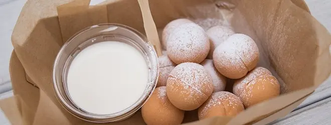 新鮮な生クリームに焼きたてのベビーカステラをディップして食べると、口いっぱいに美味しさが広がります。