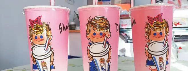 ソフトクリームに、ストロベリーやこしあん、カシスなどを加えたシェイクは、昔ながらのキュートなカップが可愛くてインスタ映えもばっちり!