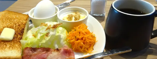 モーニングのバタートーストセット700円が人気、おススメです。早朝から夜遅くまで営業していてお酒も置いています。
