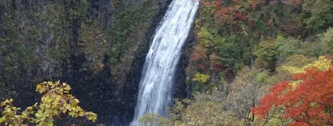落差54m、巾16mの迫力ある滝 紅葉も美しい