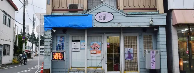 10分ぐらいてくてく。可愛い建物がたくさんありました。これは美容院〜〜たまらない💈よく見たら旅館の看板が隠れていた。もともと旅館なのかな、?