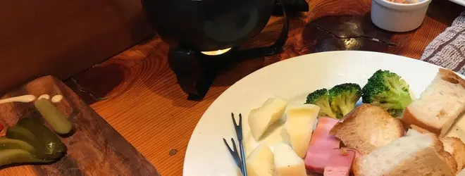 写真は右にチーズフォンデュと左にピクルスです。
