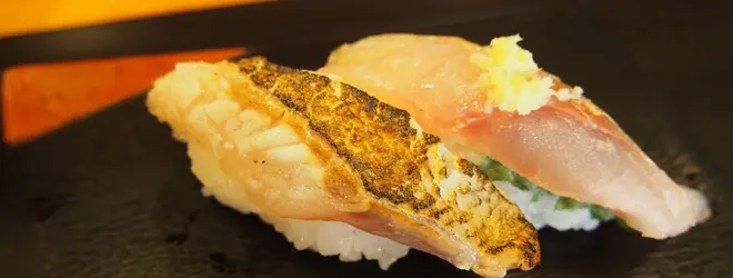 近江町市場から1分程度の立地でご夫婦だけで切り盛りされています。写真はのど黒の炙りと鯵。脂が乗ったのど黒は最高に美味しかったです!