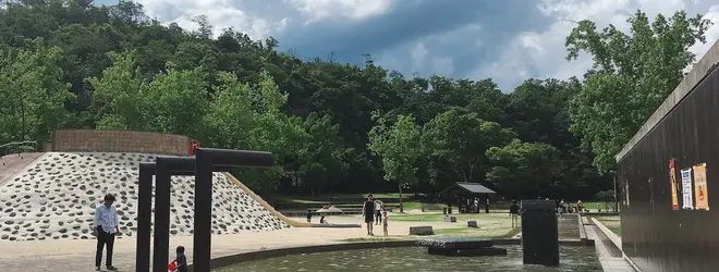 小さな子も遊べる公園です。水遊びもできて利用料かからないし、大きな屋根もあって大人も快適