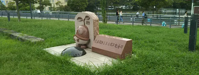 マスコットの「たねまる」は開国博Y150のキャラクターで開港の丘に設置。