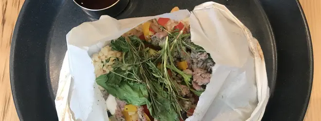 サルシッシャとハーブの包み焼きガパオライス風1600円