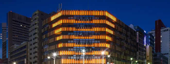築地にある共栄会のビルです。ファサードのリニューアルを隈健吾さんが担当しています。道路拡張に協力した費用で実現しており、寿月堂の案件の流れで丸山海苔絡みで担当したそうです。