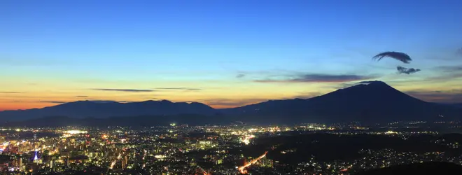 盛岡市内の夜景と奥羽山脈のシルエットが哀愁を感じる絶景