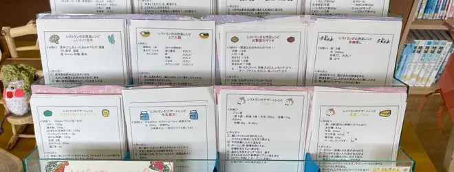 帰り際にレジ近くを見てみると、なんとお料理のレシピがいくつも置いてありました。この中にないものも、スタッフさんに聞いたら教えてくれるとのこと!