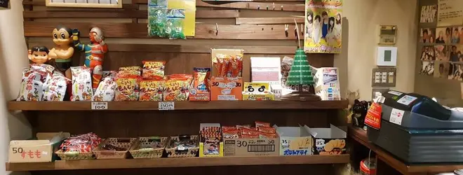 お店にはいると目の前にオープニングを撮影した駄菓子コーナーが!
