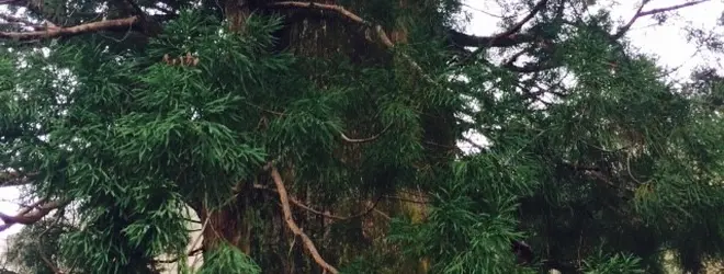 国の天然記念物である精進の大杉。杉の巨木としては山梨県下において代表的なもので、その大きさに圧倒されます。