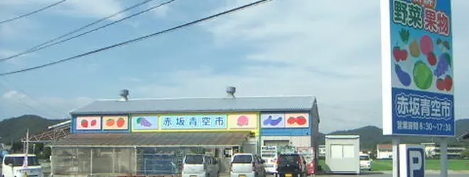 赤坂青空市は、自然が多く、どこまでも広がる田んぼの中にある農産物直売所。 多彩な野菜、果物などの農産物をリーズナブルな価格で手に入れることができます。
