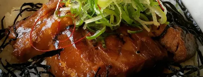 写真は1番人気の『恋美豚炙り丼』(864円)。作るのに2日以上かかるという恋美豚の角煮がのっており、海苔もネギもお米も美浜産にこだわった絶品メニューです!